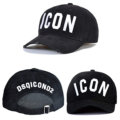 Cappello con scritta ICON: logo ricamato sulla parte anteriore e posteriore, la parte posteriore del cappello è DSQICOND2. Cinturino regolabile, adatto per sport e attività all'aperto, per l'uso quotidiano.