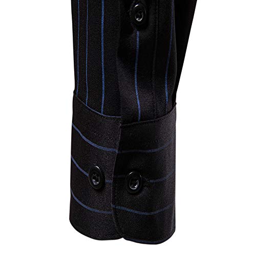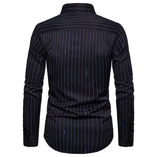 Loeay Camicie Casual da Uomo Camicie Eleganti da Uomo a Maniche Lunghe a Righe Social Business Casual Slim Fit Streetwear Nero XXL