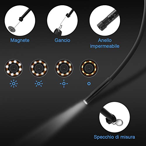 LOETAD Endoscopio WIFI Telecamera Ispezione 1080P HD Impermeabile IP68 con 8 LED Regolabili per Android, IOS, Tablet, Cavo Semirigido 5M