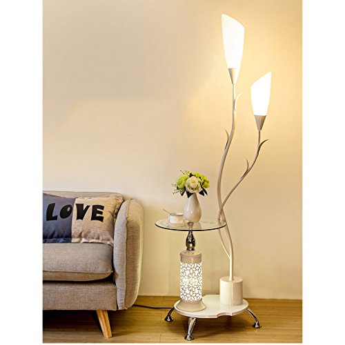 LOFAMI Lampada da terra moderna, con ripiani in vetro, 2 paralume in acrilico bianco chiaro, decorazione in metallo lampada per soggiorno camera da letto, H171CM (Color: White)