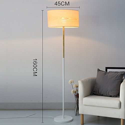 LOFAMI Lampada da terra moderna del salotto, paralume creativo delle schegge di legno, lampada da terra della camera da letto del metallo base, H 160CM × W 45CM