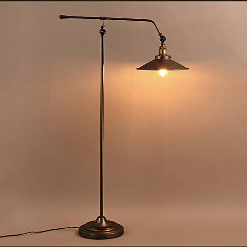 LOFAMI Lampada da terra vintage a braccio lungo regolabile in altezza, luce da pavimento in metallo E27 per soggiorno, camera da letto, ufficio, H118 × D30CM