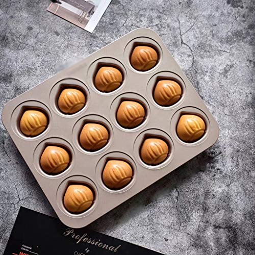 LOFAMI Teglie per biscotti 12-cup castagna antiaderente forma muffin/teglia da forno teglia da cucina forno cottura stampo, oro