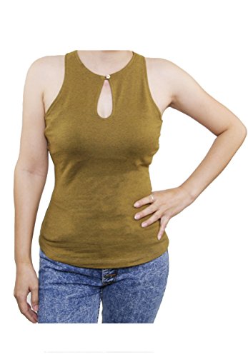 Lofbaz Donna Spaghetti Strap la Camicetta con Collo Alto Design #1 Curcuma L