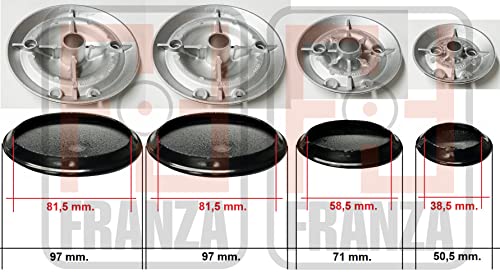 Il kit è composto da 4 bruciatori spartifiamma 2 Grandi - 1 Medio - 1 Piccolo + Tripla corona con le relative coperture smaltate nere lisce lucide