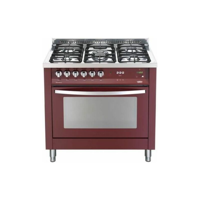 Piano cottura - finitura acciaio inox lucidato a specchio - 5 fuochi a gas valvolati III Serie di cui 1 tripla corona - accensione elettronica integrata alla manopola - protezione totale Gas-Stop - griglie in ghisa Forno - gas ventilato - accensione elettronica integrata alla manopola - protezione totale Gas-Stop - capacità 94 lt - grill elettrico - programmatore di fine cottura - porta con 3 vetri di cui 2 riflettenti per una minore dispersione di calore - vetri interni della porta asportabili per facilitarne la pulizia - guide forno estraibili - ventola tangenziale per raffreddamento cruscotto - piedini regolabili in altezza e in profondità Larghezza 900 mm Profondità 600 mm Altezza 905 mm Altezza (min.) 85 cm Classe efficienza energetica A Consumo energetico (convenzionale) 2,25 kWh Numero di forni 1 Dimensione del forno Largo Sorgente di alimentazione del forno Electric,Natural gas Capacità netta del forno 94 L Grill Sì Capacità interna forno totale 94 L Capacità lorda del forno