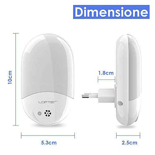 Risparmio energetico: con una presa elettrica, la luce notturna per bambini Lofter è ideale per tutti i settori, la camera dei bambini, la camera da letto, il corridoio, le scale, ecc. La luce notturna LOFTER produce molto meno calore, ma un'illuminazione antiriflesso sufficiente rispetto alle lampadine a incandescenza, ed è più sicura e più efficace. Inoltre, la sua durata è superiore a 100.000 ore.