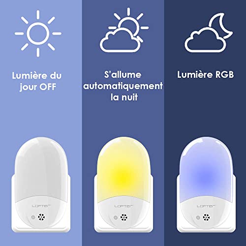 LOFTER - Luce notturna per bambini, a LED, presa elettrica multicolore, automatica plug-and-play, con sensore crepuscolare (2 pezzi)