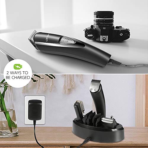 Due Modalità di Ricarica - Il nostro tagliacapelli uomo professionale senza filo ha due modalià di ricarica, Lei può ricaricarlo direttamente o metterlo sullo stand ricaricabile per ricaricare automaticamente. Con una durata molto lunga dopo una ricarica completa, non avrebbe più bisogno di ricaricarlo continuamente.