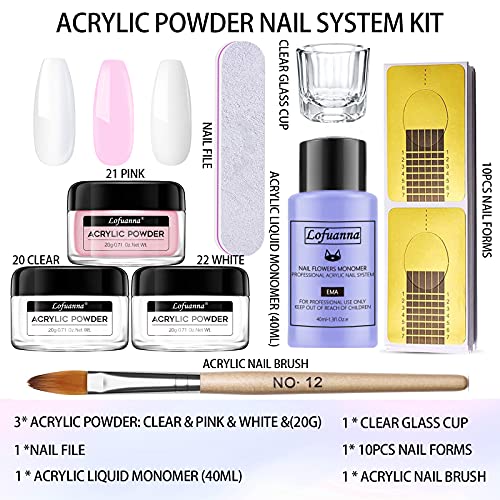 Lofuanna-Set di Polveri Acriliche e Liquidi, Polvere Acrilica a 3 Colori, Utilizzato per Nail Art e Manicure Acriliche Professionali, Adatto Anche ai Principianti(Set-1)