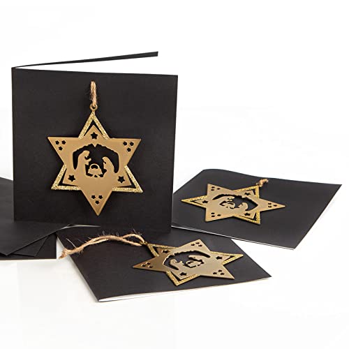 Logbuch-Verlag 3 biglietti di Natale con ciondolo a forma di presepe - Biglietti di Natale nero oro con piccolo regalo 15 x 15 cm