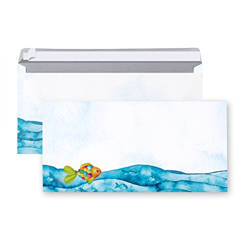 Logbuch-Verlag 20 buste lettere inviti pesce arcobaleno originale striscia adesiva battessimo comunione compleanno colorato mare