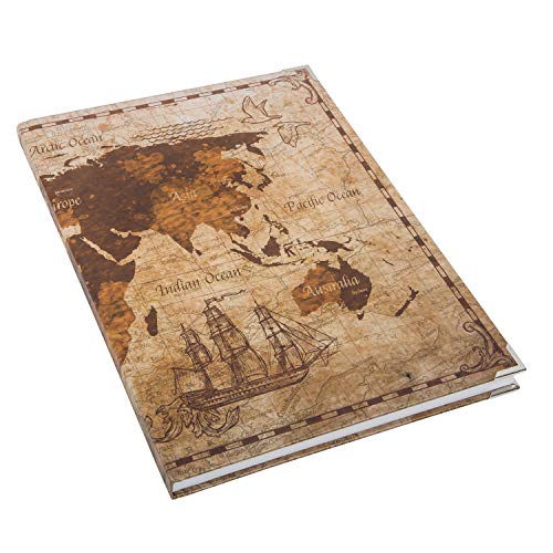Splendido set di taccuini composto da due grandi e un piccolo taccuino, tutti realizzati in stile vintage, con mappamondo e motivo medievale. Colore: marrone, marrone chiaro, beige.