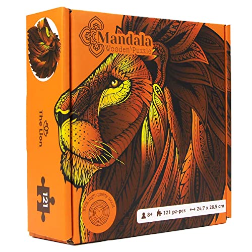 Logica Giochi Art. Il Leone - Mandala Puzzles - Puzzle in Legno - Puzzle a Forme Innovative - 24.7 x 28.5 cm - 121 pz