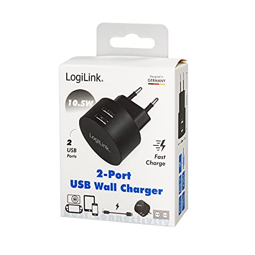 LogiLink PA0218 USB Wall Charger 2 Port, 2x USB-AF, 10.5W, round shape, black