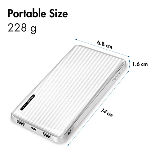 LogiLink PA0257W - Power Bank 10000 mAh, polimeri di litio, con cavo 2 in 1, colore: Bianco