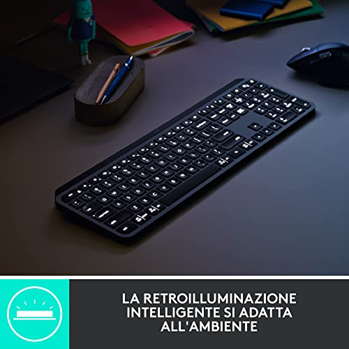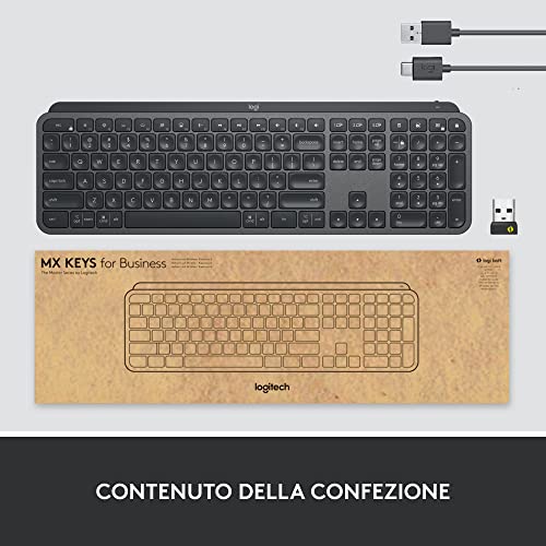 Logitech MX Keys for Business - tastiera wireless retroilluminata, tasti Perfect Stroke silenziosi, tecnologia Logi Bolt, Bluetooth, ricaricabile, Windows/Mac/Chrome/Linux, Italiano QWERTY - Grigio