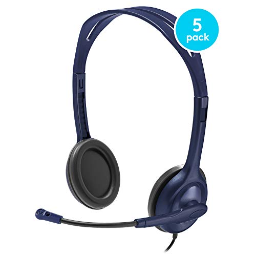 Logitech Kit Cuffie Cablate, Cuffie Stereo con Microfono, Jack Audio 3.5 mm, Limite Volume 85 dB, 5 Cuffie per Set, PC/Mac/Laptop/Tablet, Blu