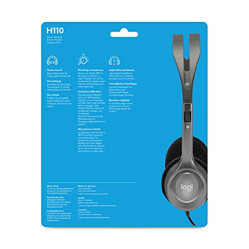 Logitech H110 Cuffie Cablate, Stereo con Microfono per Computer, Cancellazione Rumore, Doppio Jack Audio da 3.5 mm, PC/Mac/Laptop, nero