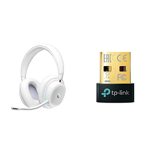 Logitech G G735 Cuffie Gaming Wireless, Illuminazione RGB LIGHTSYNC Personalizzabile, LIGHTSPEED, Bluetooth, Bianco & TP-Link Adattatore Bluetooth USB 2.0 Dongle Bluetooth 5.0 UB500, Trasferimento