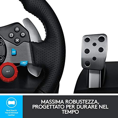 Logitech G29 Driving Force Racing Wheel Volante da Corsa con Pedali Regolabili, Ritorno di Forza Reale, Comandi Cambio in Acciaio Inossidabile, Volante in Pelle, Spina GB, PS4/PS3/PC/Mac - Nero