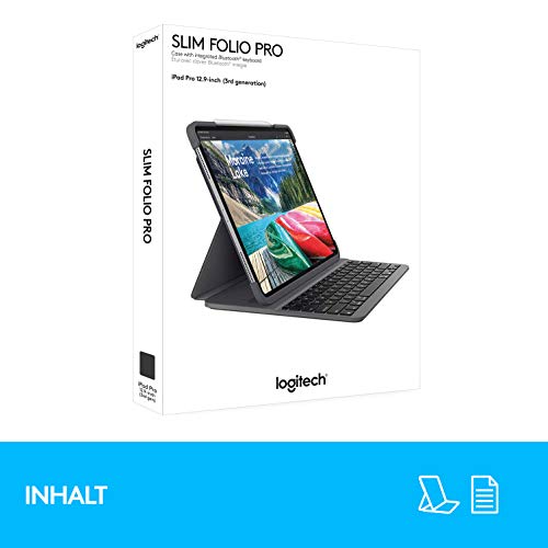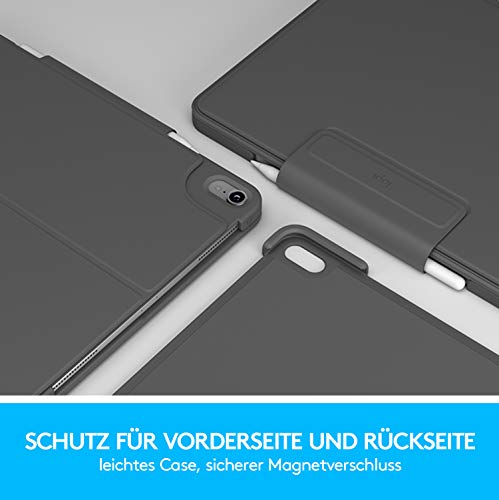 Logitech Slim Folio Pro Cover iPad con Tastiera Bluetooth Wireless, iPad Pro, Modelli 1a Gen: A2228, A2068, A2230, A2231, Tasti Retroilluminati e Rapidi iOS, Layout Tedesco QWERTZ, 11 Pollici, Nero