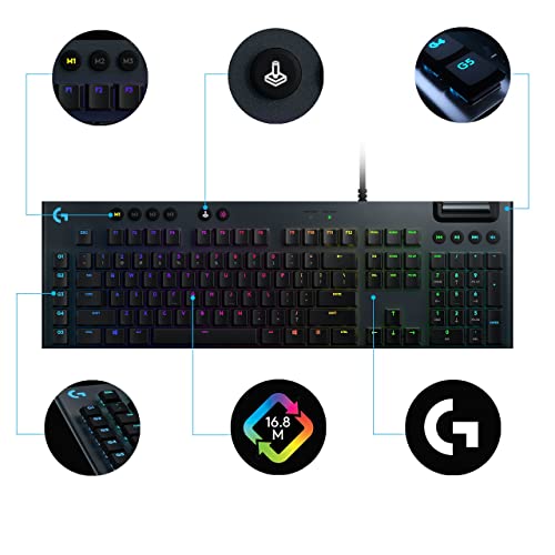 Logitech G815 LIGHTSYNC RGB Tastiera Gaming Cablata, Profilo ribassato, GL-Clicky Switches, 5 Tasti G Programmabili, USB Passthrough, Controlli Multimediali Dedicati, QWERTY US Layout, Nero