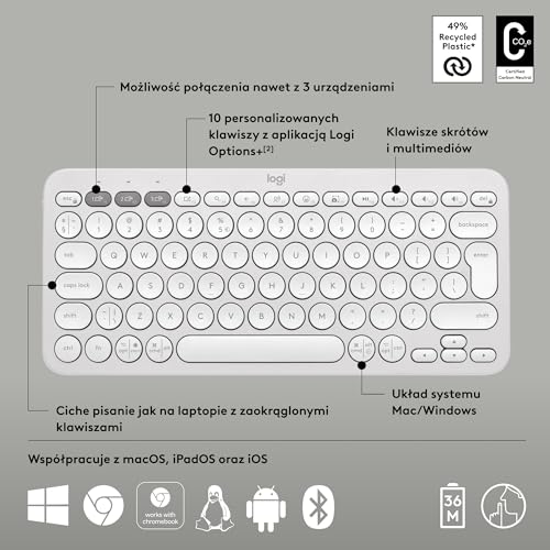 Logitech Pebble Keys 2 K380s - QWERTY US International Layout, White