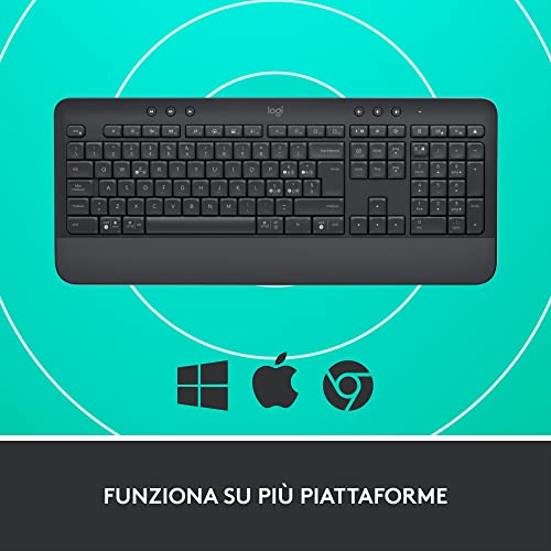 Logitech Signature K650, Tastiera Poggiapolsi Wireless Full-size con Bluetooth BLE o Ricevitore USB Logi Bolt, Tasti Smorzati e Tastierino, Compatibile con PC/Windows/Mac, Italiano QWERTY - Grigio