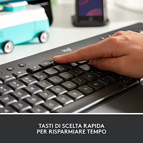 Sempre affidabile: la tastiera wireless Logitech non richiede batterie nuove per un massimo di 36 mesi (può variare in base all'utente e al computer), è facile da pulire e resiste agli schizzi