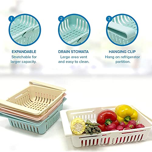 Logther 3Pcs Organizer Frigorifero, Contenitori Frigo Retrattile, Cestello di Scolo,Cestello per Frigorifero, Multifunzionale, per Frigorifero, Congelatore, Dispensa, Armadi, Ripiani, Bagno