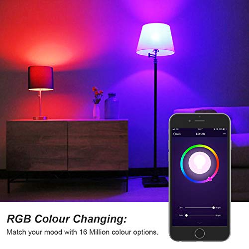 Lohas WiFi A60 E27 LED Lampada, con ALEXA e Google Home, Lampadina LED 12W pari a 80W, Multicolore RGB+Bianco Freddo (6000K), Controllo Remoto da Smartphone iOS, Android, 2 pezzi