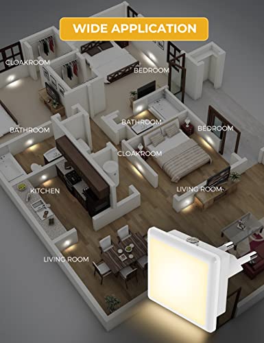 AMPIA APPLICAZIONE Le nostre luci notturne producono 40 lumen di luce che fornisce un'illuminazione abbondante senza essere troppo luminose o dure. Adatto per camera da letto, corridoio, WC, passaggio, cucina, soggiorno, camera dei bambini, corridoio, ecc.