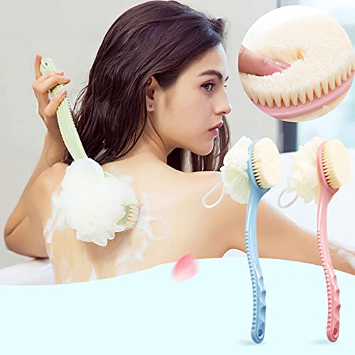 Loialpupy Spazzola da bagno 2 in 1 con setole e luffa, per la schiena, con manico lungo, per massaggiare il corpo, per bambini, anziani, uomini e donne, per il corpo (A)