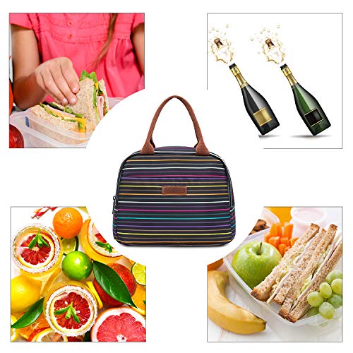 LOKASS Borsa termica pranzo al sacco, con rivestimento isolante a prova di perdite.Leggera per donne, ideale per picnic/nautica da diporto/spiaggia/pesca/scuola/lavoro (Strisce colorate)