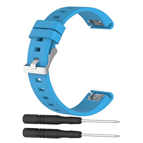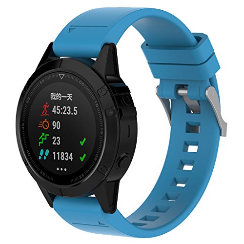 LOKEKE cinturino di ricambio per Garmin Fenix 5 con Quickfit - 22 mm di ricambio in silicone per Garmin Fenix 5/Forerunner 935/Quatix 5/Quatix 5 Sapphire/Approach S60 (silicone azzurro cielo)