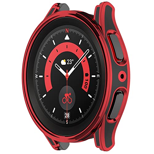 LOKEKE Compatibile con Samsung Galaxy Watch 5 Pro 45 MM PC Custodia protettiva con pellicola protettiva in vetro temperato (nero + rosso)