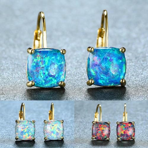 LOKILOKI Orecchini Boho Donna Bianco Blu Opale Carino Arcobaleno Orecchini A Cerchio Quadrato per Le Donne Orecchini da Sposa in Oro Giallo da Sposa Delicati