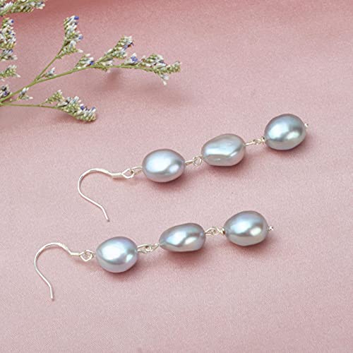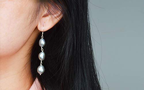 LOKILOKI Orecchini Lunghi con Perle Barocche Naturali per Le Donne Orecchini Pendenti in Argento Sterling 925 Fatti A Mano con Perle d'Acqua Dolce Grigie Regalo per Le Feste