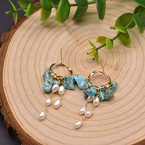 LOKILOKI Orecchini con Perle d'Acqua Dolce Naturali Originali Orecchini con Orecchini A Goccia in Turchese 925 Sterling Silver Fine Jewelry