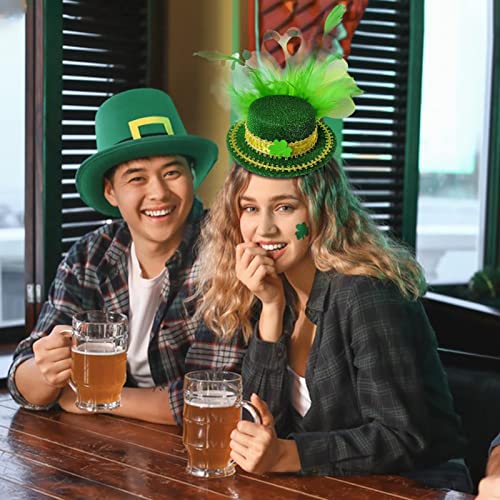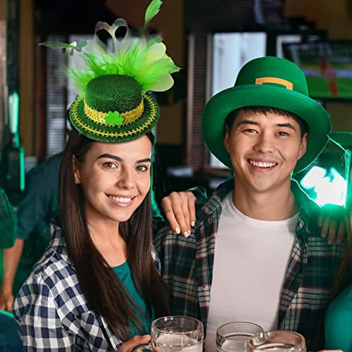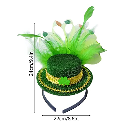 LOKOO Fascia per capelli di San Patrizio, Cerchietto per capelli con piume di cappello a cilindro irlandese, Copricapo elastico per la festa di San Patrizio