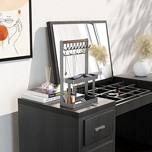 Lolalet Organizer Gioielli Porta Collane da Appendere Espositore per Collane Portacollane a 4 Livelli con 12 Ganci per Anelli, Collane, Porta Gioielli da Tavolo Portagioie a forma di torre-Grigio