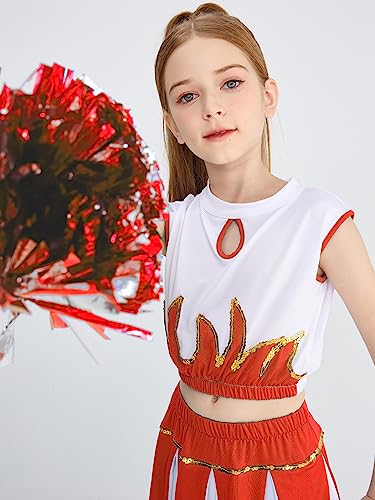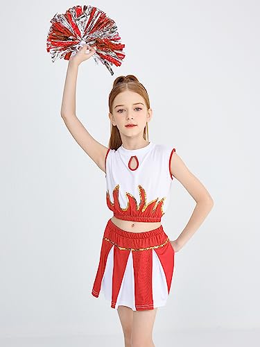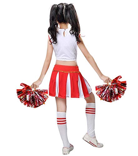 LOLANTA Costume da Cheerleader per Ragazze Uniforme da Cheerleader con Pompon(rosso, 6-7 anni,dimensione del tag 130)