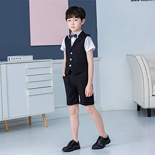 LOLANTA 4 Pezzi Completo Elegante Ragazzo da Cerimonia, Camicia a Maniche Corte + Papillon + Pantaloncini + Gilet, Nero, 140