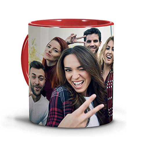 LolaPix Personalizza Tazza con Foto. Regali Personalizzati con Foto. Tazza Personalizzata Ceramica. Tazza con Colore Interno e Maniglia Rosso