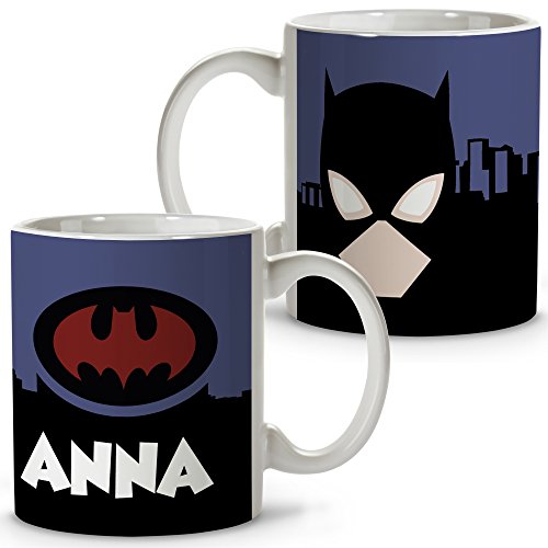 LolaPix Tazza personalizzata per supereroi con nome. Regalo Geek. Vari disegni e colori interni. Batwoman