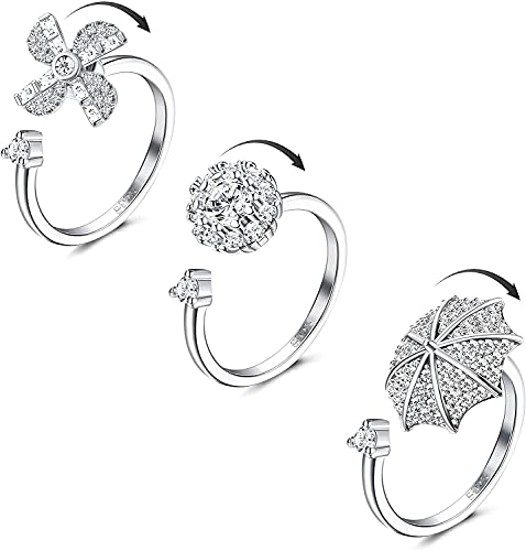 ❃SET ANXIETY RING❃--Un ordine contiene 3/4 pezzi di anelli di agitazione per l'ansia, include anelli di fiori e api, anelli di ansia di fiori CZ, anello di filatura fiocco di neve, anello di agitazione ombrello, anello di ansia mulino a vento, anelli di agitazione di stile diverso in grado di soddisfare le tue diverse esigenze, I magici anelli anti-ansia ti aiutano ad alleviare lo stress, l'ansia, la noia.