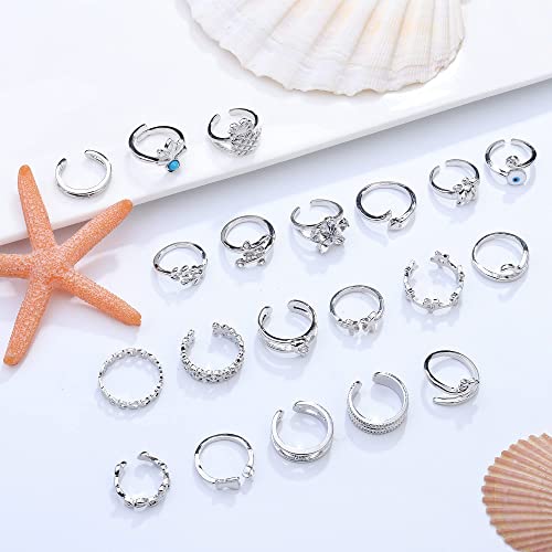 LOLIAS 20 PZ Anello Piede Regolabile per Donna Anello Punta Argento Oro Rosa Fiore Cuore Diamante Semplice Fascia Coda Aperta Anello delle Donne della Spiaggia di Estate Set di Gioielli Piede