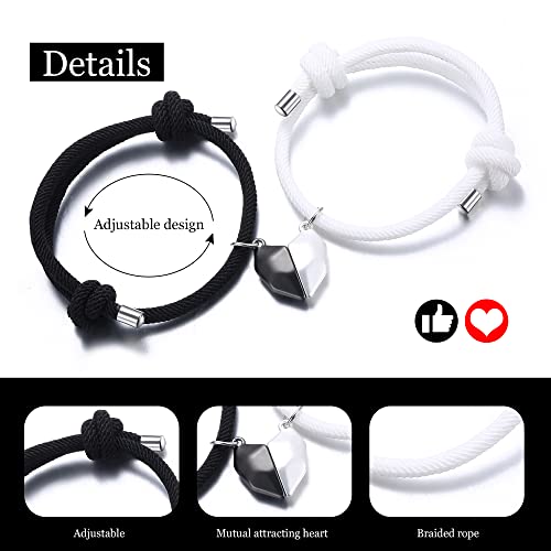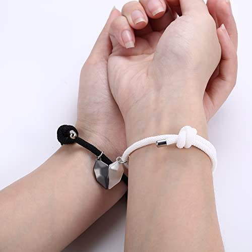 LOLIAS 4PCS Due Anime Un Cuore Coordinato Collane Bracciali per Coppie Magnete Wishing Stone Collane Pandent Set Bracciali Intrecciati Regolabili Attrazione Reciproca Amicizia Coppie Gioielli