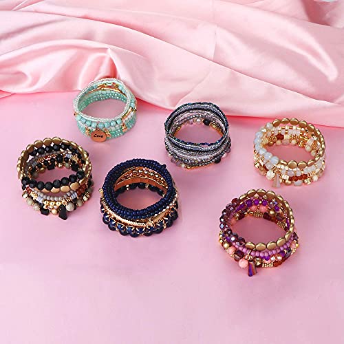 LOLIAS 6 Set di Braccialetti di Perline Impilabili Della Boemia Per le Donne Degli Uomini Braccialetti Multistrato Elasticizzati con Braccialetti Boho Gioielli Multicolori